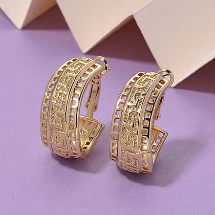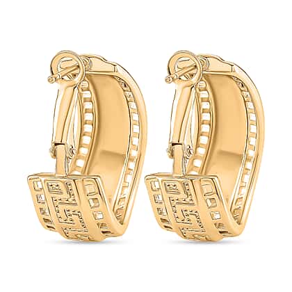 Designer Closeout - Greek Key Hoop Earrings in Yellow Gold Plated