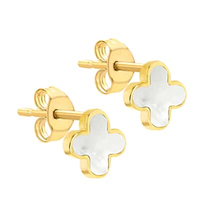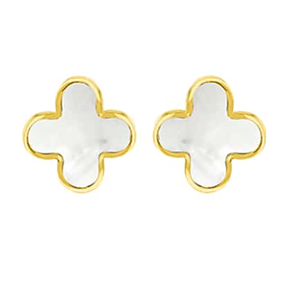 Designer Inspired - 9K Yellow Gold Mother of Pearl Petal Stud Earrings