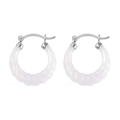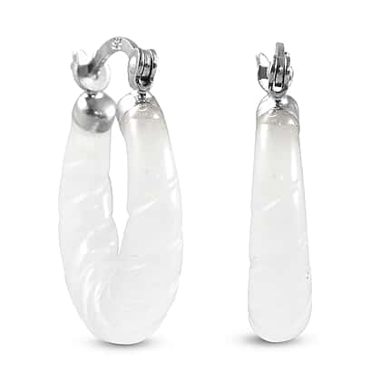 Designer Inspired - Carved White Jade Twisted Earrings (with Clasp) in Sterling Silver - White