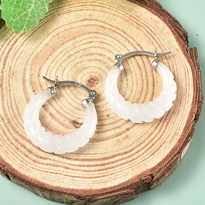- STONE DETAILS: Because of its hardness, white jade is difficult to carve; however, the twisted pattern on these hoop earrings was created by abrasion with tools and harsh sand pastes, rather than chiselling or chipping