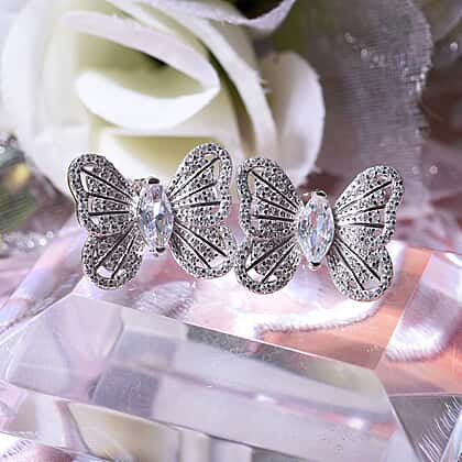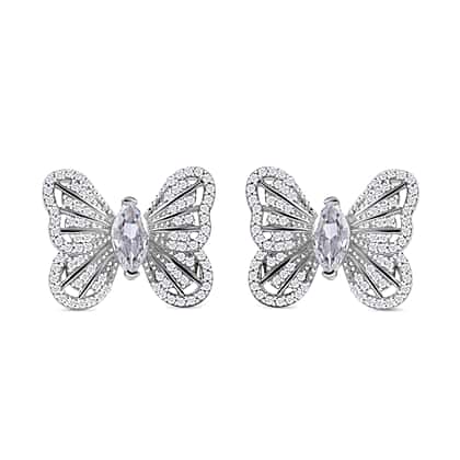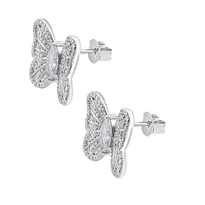 Designer Inspired - Cubic Zirconia Butterfly Stud Earrings in Rhodium Overlay Sterling Silver