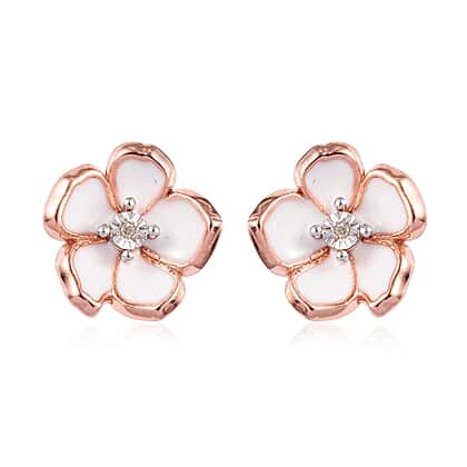 Designer inspired - Diamond (Rnd) Floral Enamelled Earrings (with Push Back) in Rose Gold Overlay Sterling Silver