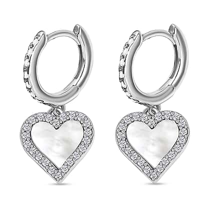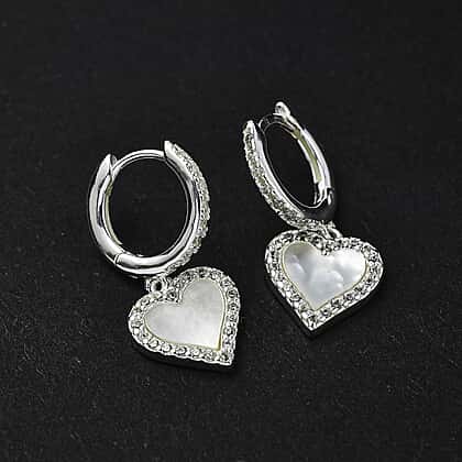 These designer-inspired heart hoop earrings are a romantic and refined choice. These dangling delights feature a lovely mother-of-pearl inlay within the heart, bordered by sparkling zirconia rounds. Set in sterling silver, these earrings blend timeless charm with modern elegance, making them a perfect gift for someone special or a delightful treat for yourself.