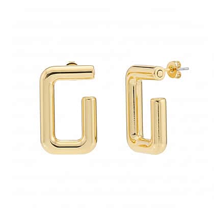 This Vicenza closeout 9K yellow gold earring is a geometric ode to modern Italian design, projecting minimalist attitude in bold, sculptural form. Each earring is fashioned into an angular, open rectangular loop,delivering a striking architectural edge that frames the face with contemporary sophistication. The high-shine gold finish offsets the strong lines, balancing sharp precision with a touch of luxe softness. Finished with a streamlined push back closure, the piece slips on effortlessly, turning a simple gesture into a definitive style statement. Designed for individuals looking for unconventional pieces.