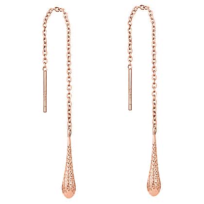 Designer Inspired-Rose Gold Overlay Sterling Silver Diamond Cut Needle Threader Earrings