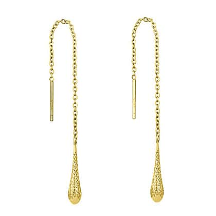Designer Inspired-Yellow Gold Overlay Sterling Silver Diamond Cut Needle Threader Earrings
