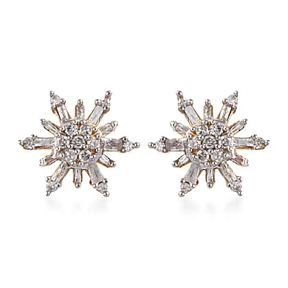 Diamond (Bgt and Rnd) Starbust Earrings (with Push Back) in 14K Gold Overlay Sterling Silver 0.330 Ct.