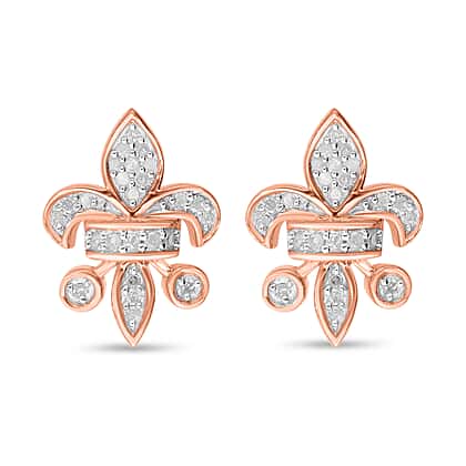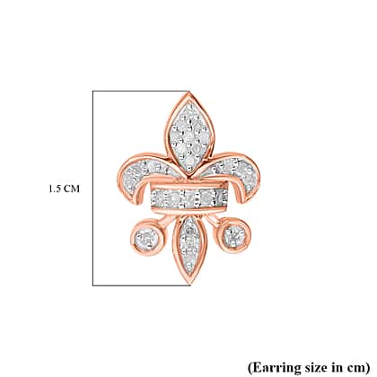 Diamond Fleur De Lis Stud Earrings in 18K Vermeil Rose Gold Plated Sterling Silver 0.23 Ct