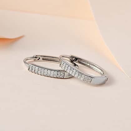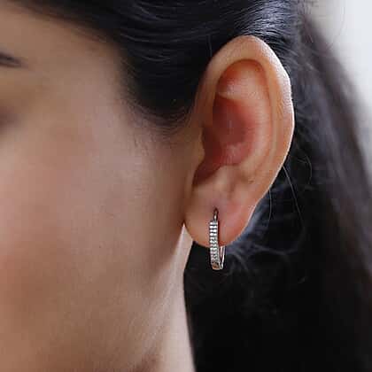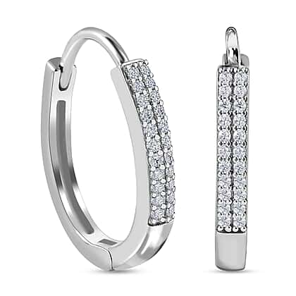 Diamond Hoop Earrings in Platinum Overlay Sterling Silver 0.25 Ct.