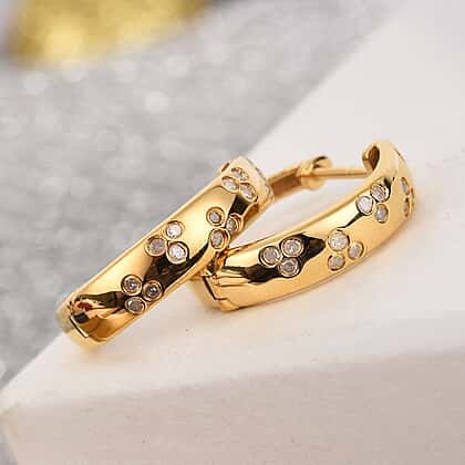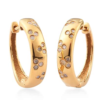 Diamond Hoop Earrings (with Clasp) in 14K Gold Overlay Sterling Silver 0.25 Ct.
