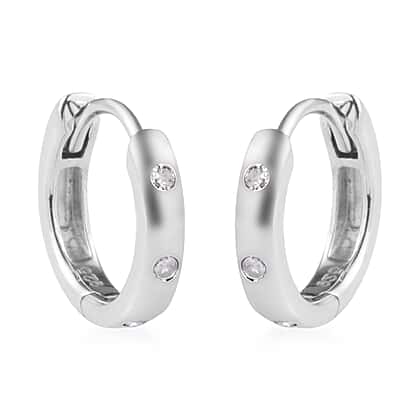 Diamond Huggie Hoop Earrings (with Clasp) Platinum Overlay Sterling Silver 0.10 Ct.