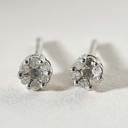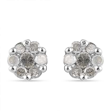 Diamond Pressure Set Floral Stud Earrings in Platinum Overlay Sterling Silver