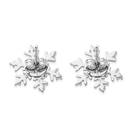 Diamond Snowflake Stud Earrings in Platinum Plated Sterling Silver