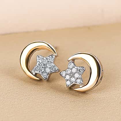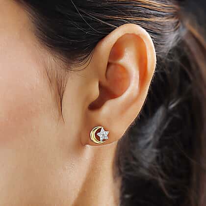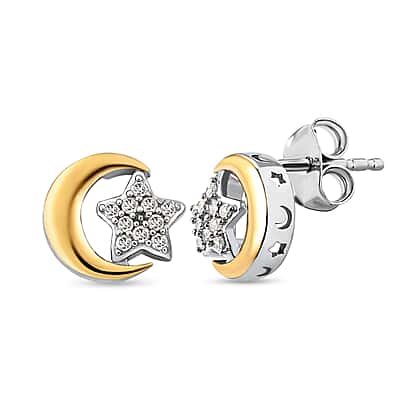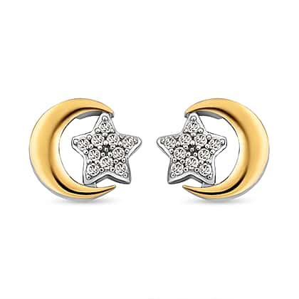Diamond Star with Half Moon Stud Earrings in Dual Tone Plated Sterling Silver