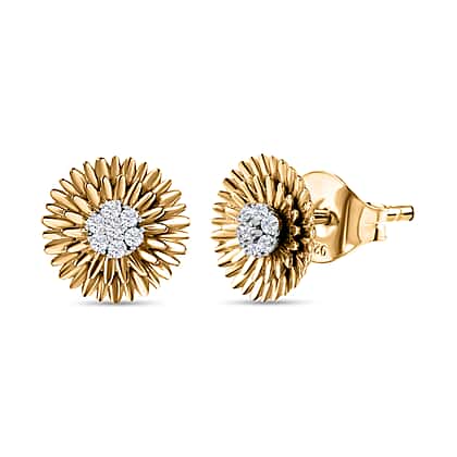 Diamond Stud Earrings in 18K Vermeil Yellow Gold Plated Sterling Silver