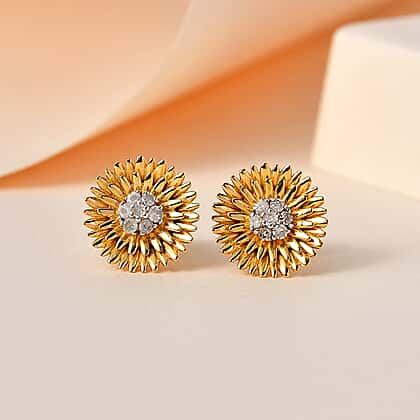 Grace your earlobes with these exquisite diamond stud earrings, as these beauties are designed just for you. These floral earrings feature a radiant cluster of white diamonds in the heart, designed to catch the light and ensure you sparkle on every occasion. Crafted with meticulous attention to detail, these earrings are secured comfortably with a push post setting. Made of 18K vermeil yellow gold plated sterling silver, these beauties are perfect for everyday elegance or special evenings out.
