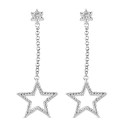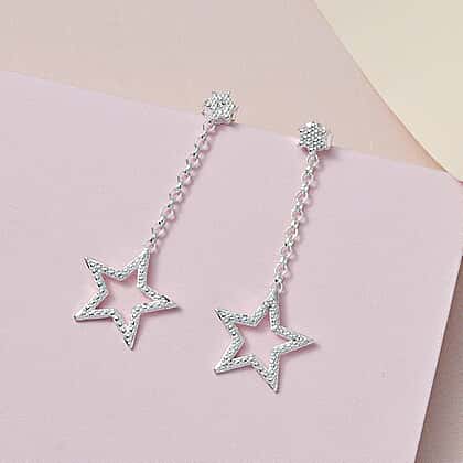 This pair of fantastic diamond star dangle earrings will dazzle your outfit. It is crafted from sterling silver with a fine polish to prevent tarnishing. This pair has a star dangling through the frame with a chain and features millgrain detailing for a unique touch. The diamond is studded on the top, and you can secure a push-back clasp. You can pair it with a star pendant by the TJC collection.