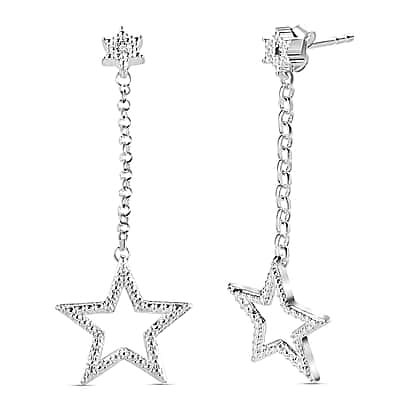 Diamond Stud Shooting Star Dangle Earrings in Sterling Silver