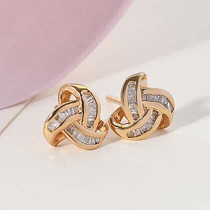 0.26 Ct Diamond Triple Knot Earrings with Push Back GH Colour in 14K Gold Plated Silver