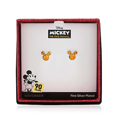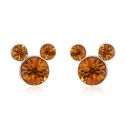 Disney Mickey Mouse Gold Austrian Crystal Stud Earrings in Silver Tone