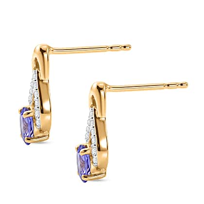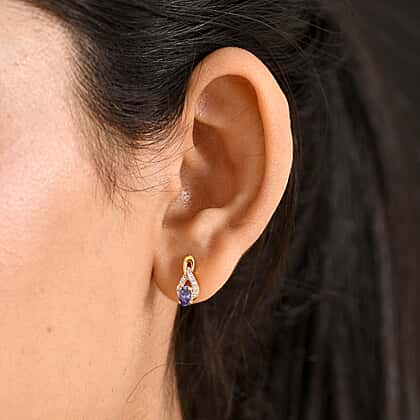 D'Joy - AAA Tanzanite & White Zircon Solitaire Stud Push Post Earring in Yellow Gold Plated Sterling Silver
