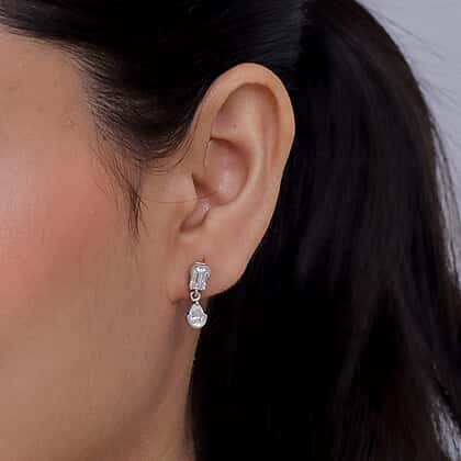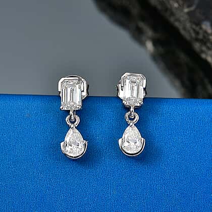 D'Joy - Moissanite Dangling Earring with Push Back in Platinum Overlay Sterling Silver 1.92 Ct.