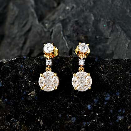 D'Joy - Moissanite Dangling Earring with Push Back in Yellow Gold Plated Sterling Silver 1.90 Ct.