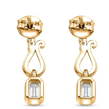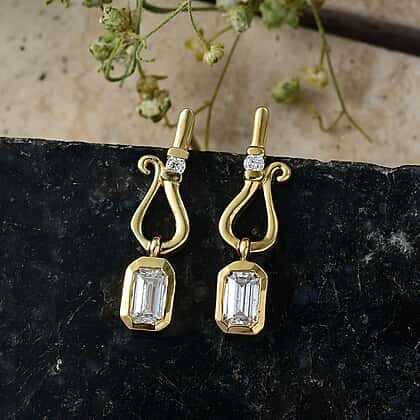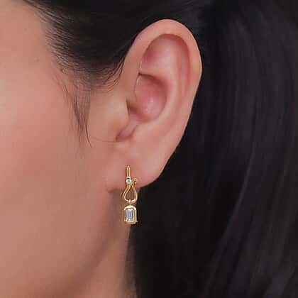 D'Joy - Moissanite Dangling Earring with Push Post in Yellow Gold Plated Sterling Silver
