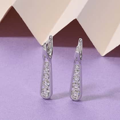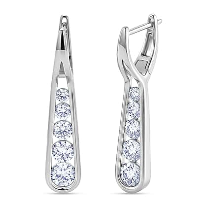 D'Joy - Moissanite Drop Earring with Clasp in Rhodium Overlay Sterling Silver 1.83 Ct.