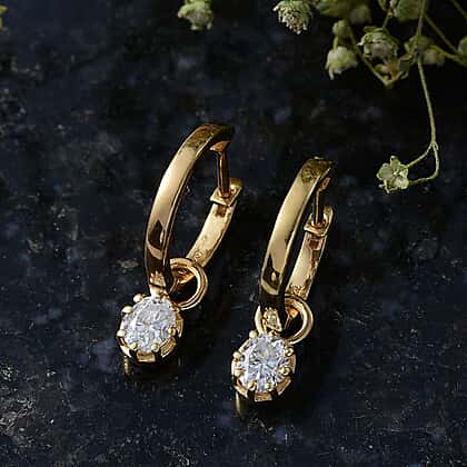 D'Joy - Moissanite Solitaire Full Hoop Earring in Yellow Gold Plated Sterling Silver