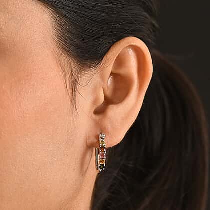 D'Joy - Multi-Tourmaline Earring with Clasp in Platinum Overlay Sterling Silver 1.15 Ct.