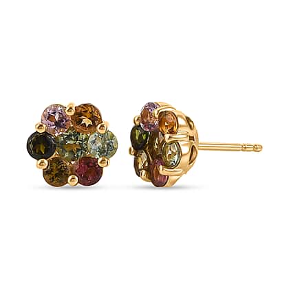 D'Joy - Multi-Tourmaline Earring with Push Post in Yellow Gold Plated Sterling Silver 1.75 Ct.