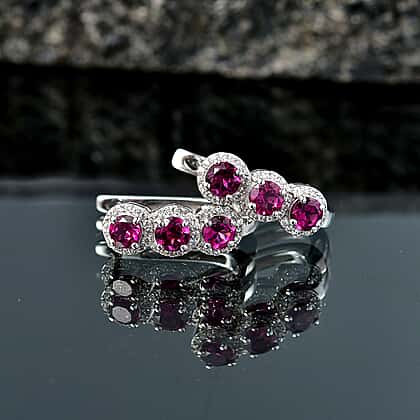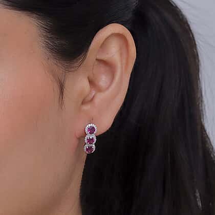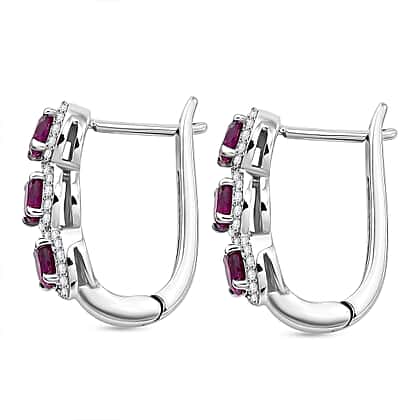 D'Joy - Natural Radiant Ember Garnet & White Zircon J Hoop Earring with Clasp in Rhodium Overlay Sterling Silver 2.68 Ct.