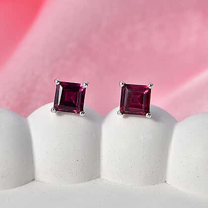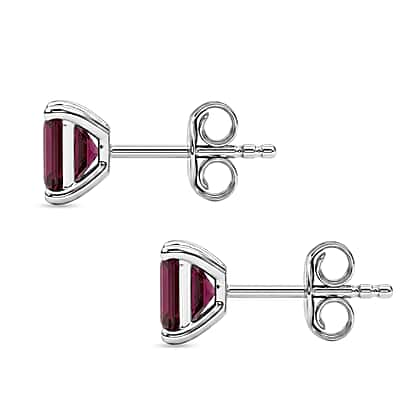 D'Joy - Radiant Ember Garnet Solitaire Stud Push Post Earring in Rhodium Overlay Sterling Silver 1.80 Ct.
