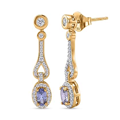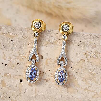 D'Joy - Tanzanite & White Zircon Dangling Earring with Push Post in Yellow Gold Plated Sterling Silver 1.00 Ct.