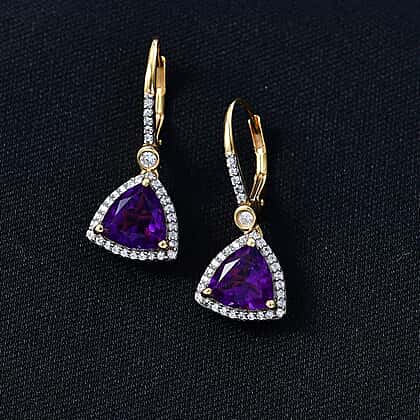 D'Joy AAA African Amethyst & White Zircon Solitaire Lever Back Earring in Yellow Gold Plated Sterling Silver 4.07 Ct