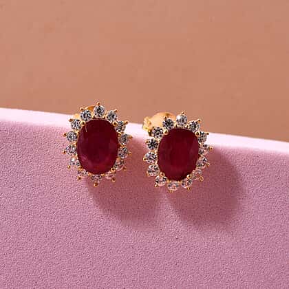 D'Joy AAA African Ruby & White Zircon Earring with Push Back in Yellow Gold Plated Sterling Silver 2.92 Ct.