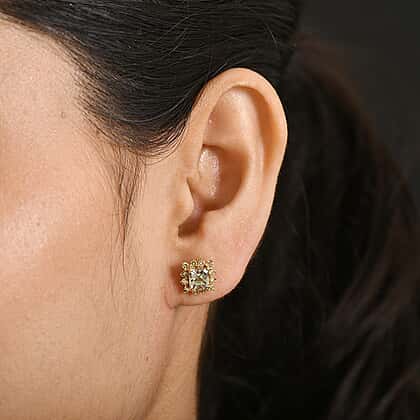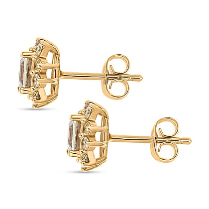 D'Joy AAA Natural Turkizite (Asscher Cut) & Lab Grown Yellow Diamond (SI) Earrings in 18K Vermeil Yellow Gold Sterling Silver 2.00 Ct.