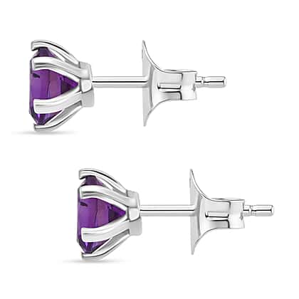 D'Joy 1.53 Ct. African Amethyst Solitaire Stud Earring in Rhodium Overlay Sterling Silver