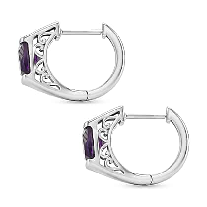 D'Joy African Amethyst Full Hoop Earring in Platinum OverlaySterling Silver 3.018 Ct.