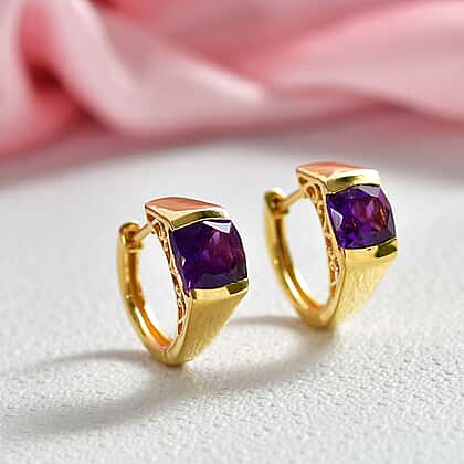 D'Joy African Amethyst Full Hoop Earring Sterling Silver 3.018 Ct.