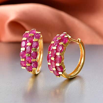 D'Joy African Ruby Full Hoop Earring in 18K Vermeil Yellow Gold Plated Sterling Silver 7.16 Ct.
