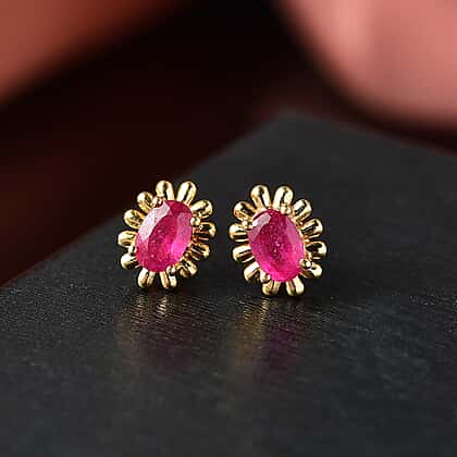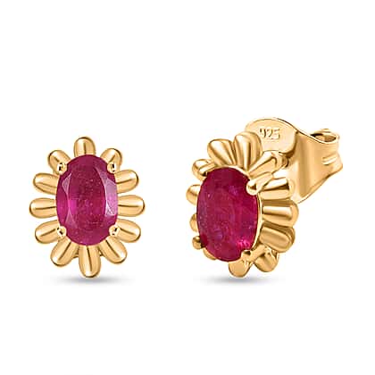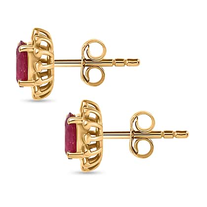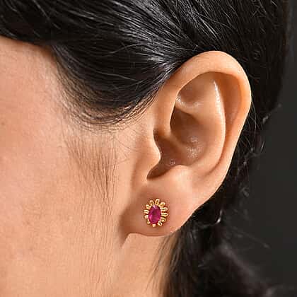 D'joy African Ruby Solitaire Stud Push Post Earring in 14K Gold OverlaySterling Silver 1.348 Ct.