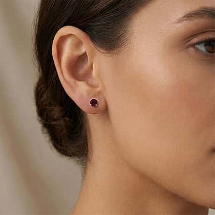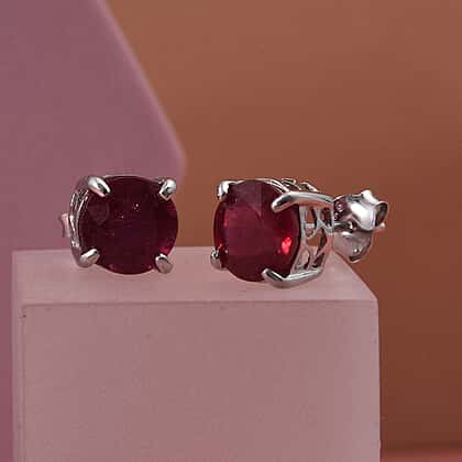 D'Joy African Ruby Solitaire Stud Push Post Earring in Rhodium Overlay Sterling Silver 5.00 Ct.