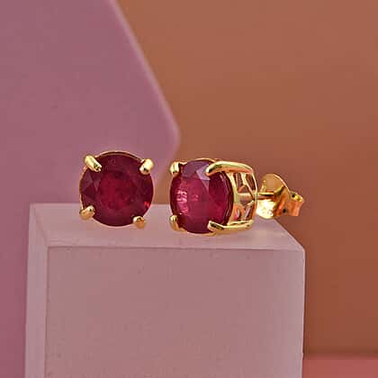 D'Joy African Ruby Solitaire Stud Push Post Earring in Yellow Gold Plated Sterling Silver 5.00 Ct.
