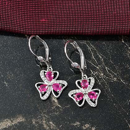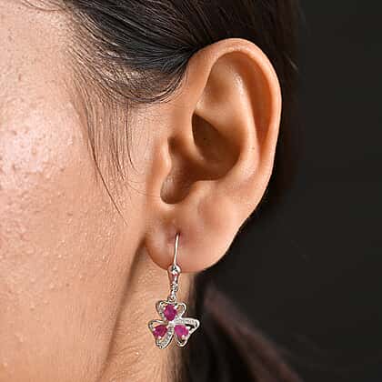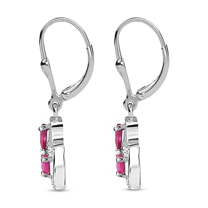 D'Joy African Ruby, White Zircon Floral Earring in Platinum Overlay Sterling Silver 1.55 Ct.
