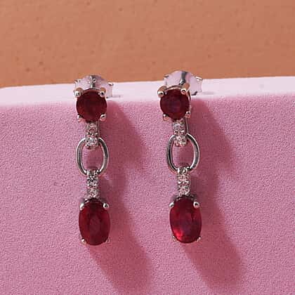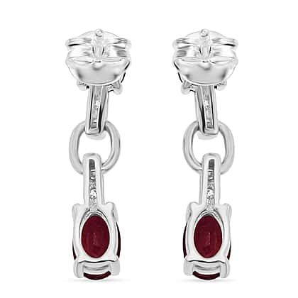 D'Joy African Ruby & White Zircon Link Drop Earring in Rhodium Overlay Sterling Silver 2.46 Ct.