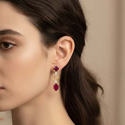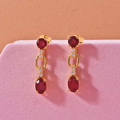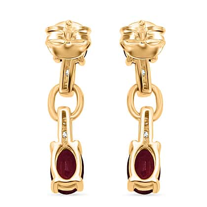 D'Joy African Ruby & White Zircon Link Drop Stud Earring with Push Back in Yellow Gold Plated Sterling Silver 2.46 Ct.
