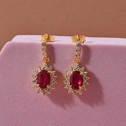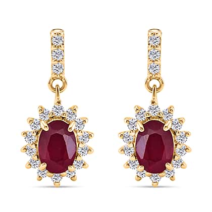 D'Joy African Ruby & White Zircon Sunburst Halo Earring with Push Back in Yellow Gold Plated Sterling Silver 3.30 Ct.