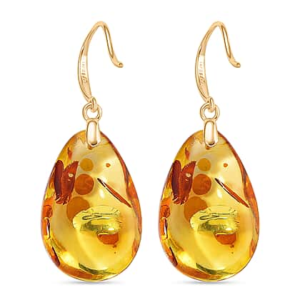 D'joy Amber Earring with Hook in Yellow Gold Plating Sterling Silver 6.85 Ct.